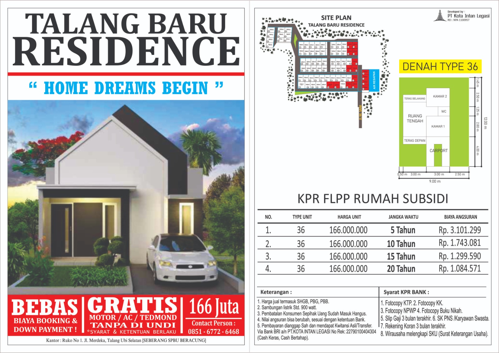 Jika Anda tertarik untuk memiliki rumah di Talang Baru Residence, silakan hubungi kontak WhatsApp di 0852 1610 6667 untuk informasi lebih lanjut. Jangan lewatkan kesempatan ini untuk memiliki rumah impian Anda!